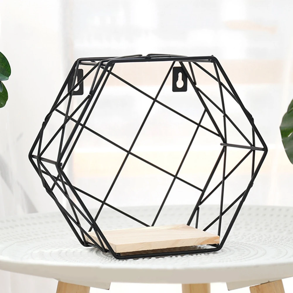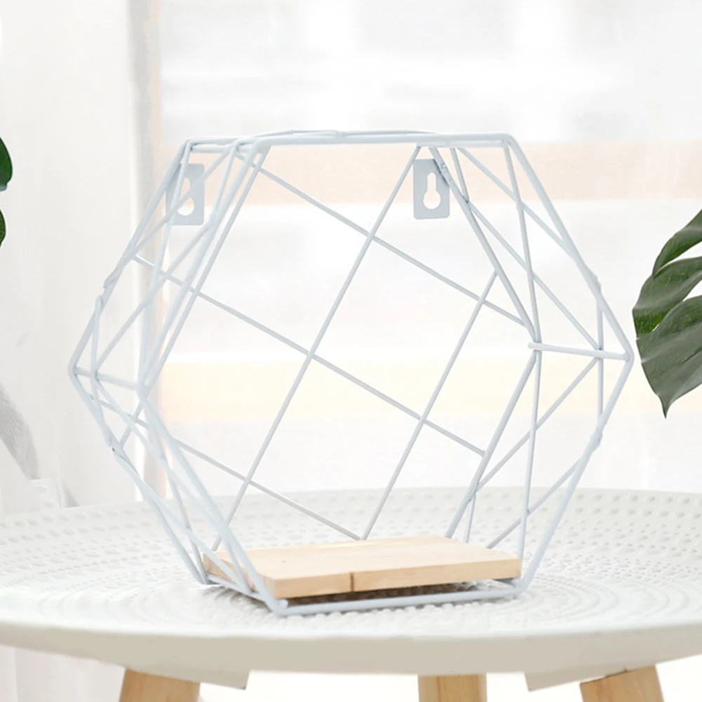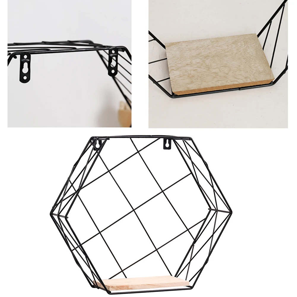 Contracted Iron Hexagon Grid Shelf Holder Wall Hanging Art Rack Organizer Home Decor