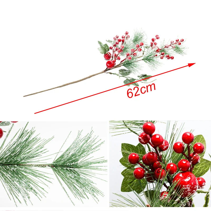 Addition Information of Artificial Pine Branch Red Fruit Artificial Berry for Christmas Decoration Fake Flower Home Party D