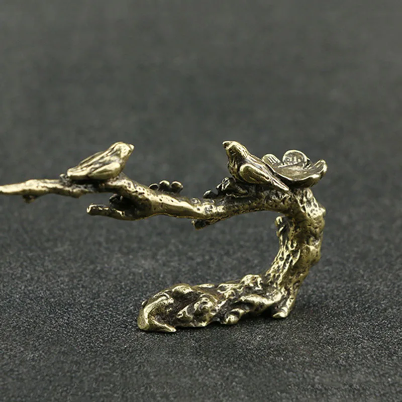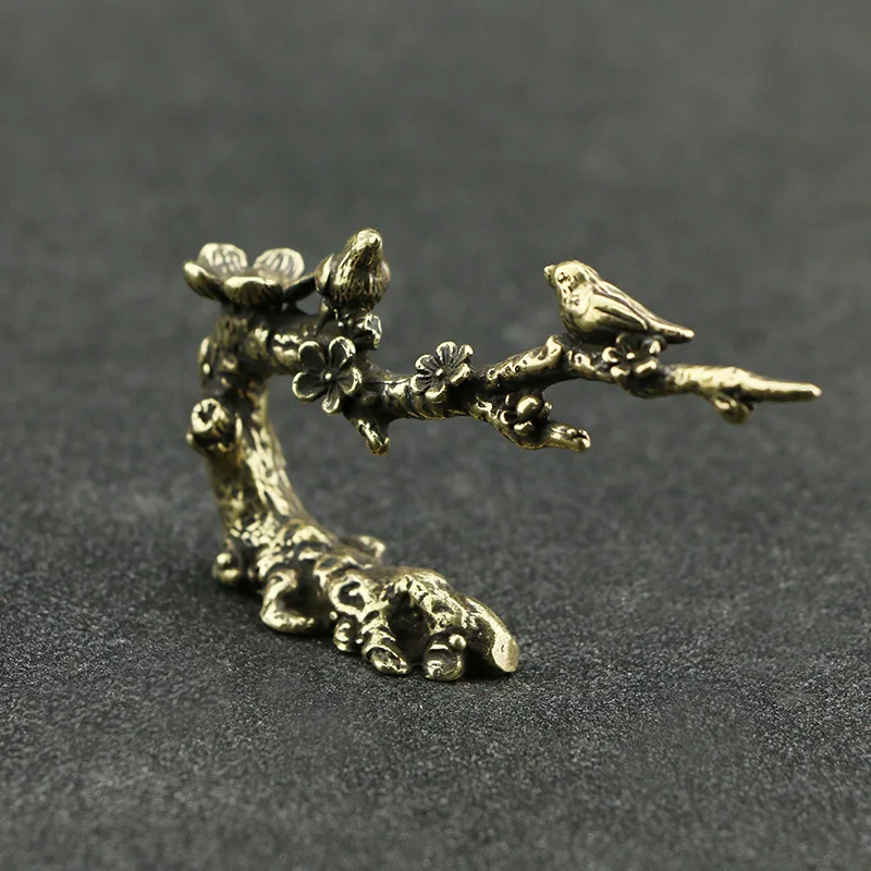 Addition Information of  Antique Copper Magpie Plum Blossom Pen Holder Small Ornaments Brass Bird Tree Figurines Home Decor